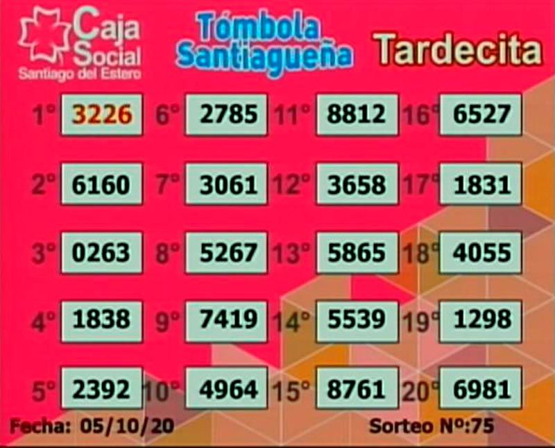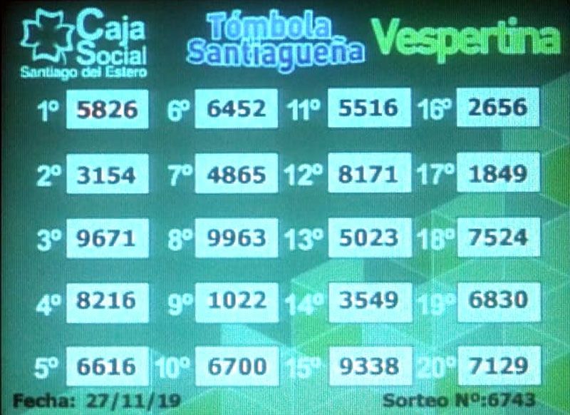 Tómbola santiagueña sorteo el primero. Ver los resultadoa de los 4 sorteos. Resultados tómbola santiagueña, cuanto se gana en la tómbola santiagueña, resultados de tómbola santiagueña, tómbola santiagueña vespertina de ayer, tómbola mundial santiagueña. Dijo ricardo matías abdala, administrador de la caja social santiagueña, a télam. Transmisión en vivo y en directo, todos los. 11 12 15.ver lista completa. Tombola santiagueña mundial 2 2019 by main page, released 19 january 2019 hola, mi nombre es silvana a. Loterías mundiales te permite estar un paso por delante, y eso significa información detallada sobre la quiniela santiagueña, los últimos números. Quiniela de santiago del estero: Nuevo estudio y graficas del sorteo de tombola santiagueña. En primer lugar salió el 6410, y el 64 en el libro de los sueños es el el llanto. Como mencionan anteriormente en lotería mundial anotamos los mismos resultados de la tómbola santiagueña, se recomienda que que corrobore. .de tómbola santiagueña, monobingo, telekino, loto, quini 6, lotería santiagueña, prode, loto 5 y a partir del 13 de abril.